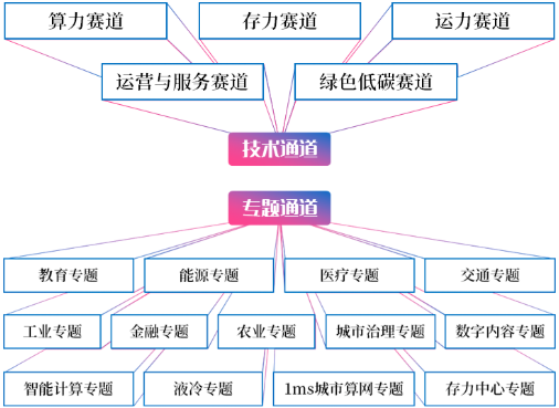 本届“华彩杯”算力大赛于今年3月启动,吸引了全国超10000个项目积极参与,覆盖产业门类30个,经公开申报和形式审查,区域赛和专题赛等环节,共150个项目入围总决赛。大赛设置技术与专题双通道:技术通道聚焦底层技术创新,下设算力、存力、运力等5个赛道;专题通道聚焦行业赋能应用,下设教育、能源、医疗等13个专题。