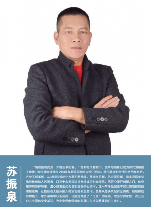 中国插座市场从不缺产能,缺的是深耕儿童安全的极致专注,缺的是手握原创科技的硬核坚守。苏振泉以敏锐洞察力深耕研发,更秉持着“以技术守护安全,以责任赋能生活”的信念,以新时代企业家的担当精神,致力升级行业用电安全标准,为万千家庭提供更可靠的安全用电解决方案,用专业与担当守护每一份用电安心,践行“让世界因我们的存在而更安全”的企业愿景。