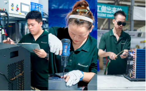 在潘洪洋看来,产品质量是企业的生命线,更是赢得市场认可的核心底气。从设计之初到批量生产,企业建立了全链条品质管控体系,以行业最高标准严格要求每一个环节。在设计阶段,结构、电控、冷媒系统、水系统等每一项设计都要经过反复内部评审与调整,直至达到可落地的最优状态。样机研发完成后,一系列严苛测试接踵而至:淋雨测试验证防水性能,运输震动测试保障结构强度,-25℃至53℃的极端环境测试检验机组适应能力,噪音测试确保不影响用户生活。原材料层面,钣金材料需通过盐雾实验检测防腐防锈能力,电路板要经过高低压测试验证稳定性。在批量生产环节,针对核心的冷媒系统,企业设置了四道检漏工序,确保万无一失,从源头规避售后维修风险。全方位、无死角的品质管控,让产品在海外市场赢得了广泛认可。