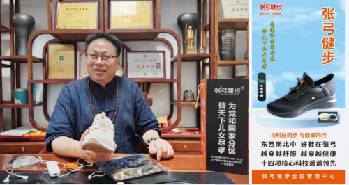 在“健康中国 2030”战略引领产业变革的时代背景下,一位兼具工匠精神与创新视野的四川企业家,正以“科技赋能行走”为使命,悄然改变着传统鞋业的生态格局。他就是--国家中医药文化宣传大使、中医药杰出贡献人物代表、中央电视台“智能穿戴健康养生”特聘专家、世界卫生组织传统医学科学院座客教授、卫生健康委“十四五”中医药文化传统古技古法技艺品牌传承人、央媒“影响力品牌”杂志2025第10期封面人物、张弓健步品牌创始人张德全。其打造的张弓健步智能健康鞋,融合反向自发热、气囊缓冲与脉冲按摩等创新功能,不仅重新定义了舒适行走的标准,更将鞋履从日常穿戴品,升级为健康管理的重要载体。