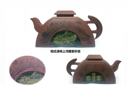 清明上河图壶更是葛韬将书画艺术与紫砂工艺完美结合的典范之作,核心理念是将中国传统书画艺术中的经典之作《清明上河图》融入到紫砂工艺中,通过紫砂这一独特的艺术形式,展现出北宋时期繁华的市井生活和丰富的文化内涵。这把壶的特色在于壶身刻画了细腻生动的清明上河图,每一个人物、每一处建筑、每一条街道都栩栩如生,仿佛将人们带入了那个繁华的时代。制作工艺极其精细,葛韬运用了多种雕刻技法,将画作中的细节完美地呈现出来,展现了他高超的技艺水平。