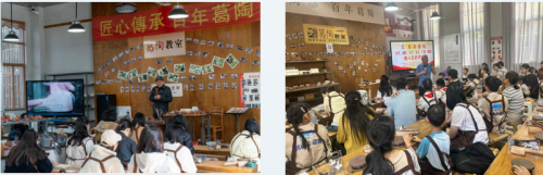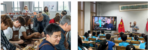 在紫砂文化传承之路上,葛韬深耕研学实践,更以砂为桥践行人类命运共同体理念。他依托葛盛陶庄与荆溪紫砂艺术院,打造多元研学体系:面向亲子家庭设计“认知-体验-创作”沉浸式活动,让孩子触摸陶土间感受“天人合一”造物观;联动高校构建“产学研用”模式,带学生深入矿坑、参与烧制,培育创新传承人;开设公益课堂,让紫砂非遗走进大众生活。