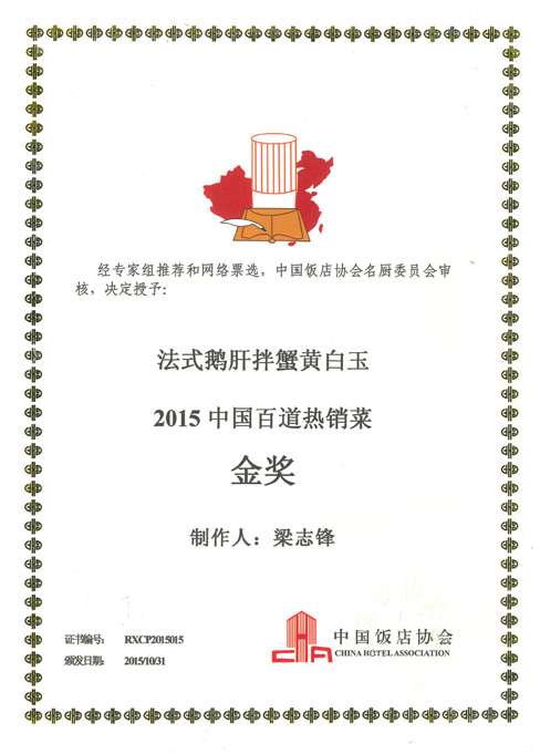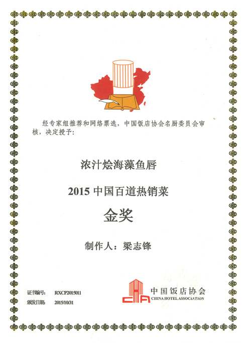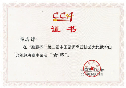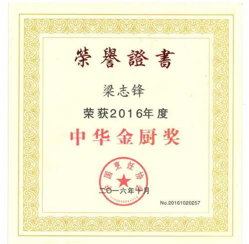 三十年深耕,梁志锋斩获荣誉无数。在首届国际药膳美食大赛中,他创作的《御膳石斛鲍鱼》荣获白金奖;在第七届全国海鲜烹饪比赛中,他以一道《白玉鱼翅卷》夺得特金奖。之后他更是在中国厨师烹饪技艺大比武华山论剑全国总冠军决赛中荣获金奖,并且一举夺得厨师届最高荣誉奖“中华金厨奖”。在中国饭店协会专家组推举及网络大众评定2015全国餐饮百道热销菜中,他一举获得了四道热销菜(金奖),分别为《浓汤烩海藻鱼唇》、《酥皮烤大虾》、《锅烧河鳗》、《法式鹅肝伴蟹黄白玉》。2026年,梁志锋成功入选《国家名厨》第七卷。与此同时,他还获得“世界御厨金爵勋章”、“国际烹饪粤菜大师奖”、“中国国际美食青年技艺精英人才”等多项殊荣,成为行业公认的标杆。
