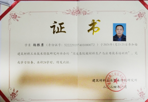 杨胜勇,贵州铜仁靓建节能环保科技有限公司董事长。自公司 2015 年成立以来, 他伴随企业从一家专注于新型建材的初创公司,历经扩大发展、技术攻坚,成长为今 天集“产、学、研、用”于一体,手握多项发明专利,并被列入国家级高新技术企业 行列的综合性环保科技服务商。他的工作,连接着实验室里的技术突破与市场端的产 品价值,更连接着企业对“无废城市”的绿色承诺与可持续发展的未来愿景。