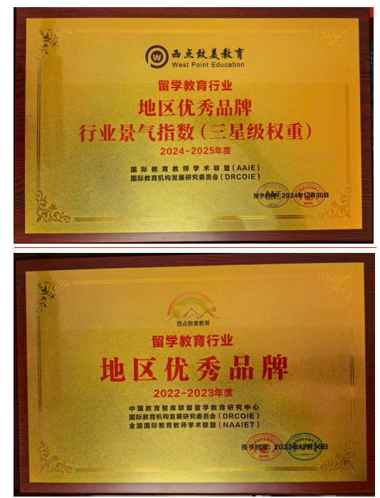 岁月的沉淀为西点致美镀上了荣誉的光泽:2022—2023年度及2024-2025年度两度蝉联留学教育行业地区优秀品牌,跻身于行业景气指数三星级权重阵营;作为全国国际教育教师学术联盟理事单位,参与制定国际教育教师能力标准;与平安留学联盟缔结战略伙伴关系,为学子保驾护航;更曾受邀登上中央电视台的舞台,分享深耕国际教育的心得。
