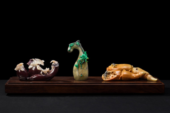 为了更加精进自己的技艺,林小忠于2003年在中国工艺美术大师徐伟军的工作室进修学习,这段经历对他的创作也产生了重要影响,徐老师是他艺术道路上的重要引领人。徐老师常说“雕刻不仅是技法的堆砌,更是对生命的敬畏与诠释”,这句话彻底改变了林小忠的创作认知。在徐老师的点拨下,林小忠不再满足于传统技法的复刻,开始深入观察自然——为了雕刻好螳螂的形态,林小忠时常在菜园里蹲守一下午;为了呈现花卉花瓣的质感,更是反复研究花朵绽放的过程。? 这段进修经历让他在技艺上实现了质的飞跃,也明白了“师法自然”的真谛。于是林小忠开始尝试将镂空、高浮雕与圆雕技法融合,在作品中注入更多哲思。比如2021年的《守望》,用蘑菇、蜗牛、松鼠的和谐共生,隐喻新时代的美好图景;2023年的《蔬香溢满》,通过常见的蔬菜昆虫,传递从平凡中发现美好的生活态度。这些作品都离不开徐大师“形神兼备”的教诲。守正创新:让青田石雕焕发时代光彩?林小忠的作品多次荣获国家级、省级大奖,2024年《月白风清》《一树百获》等三件作品还被国家一、二级博物馆永久收藏。这也是传承和创新的结合,林小忠始终认为,传统工艺的生命力在于“守正”与“创新”的平衡。“守正”是守住技艺的根本,青田石雕的镂空、浮雕、圆雕等技法是老祖宗传下来的瑰宝,必须原汁原味地传承;“创新”则是要赋予作品时代精神,让传统工艺与当代审美接轨。?
