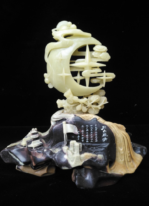 10月24日,在“国石风采 天工造物”第十八届中国四大名石雕刻艺术展期间,林小忠再次捐赠青田石雕精品《花好月圆》参与慈善拍卖。《花好月圆》选用青田封门青石料,石质温润通透,以圆雕技法刻画月下牡丹、桃花、玉豆,构图饱满、意境优美,寓意团圆美满、幸福安康。这件作品凝聚了他对传统吉祥文化的理解与对美好生活的向往,在拍卖现场一经亮相便引发热烈竞拍,最终成功拍出,所得善款全部捐赠给青田县慈善总会,用于青田县的扶贫济困、助学助医等慈善事业。青田县慈善总会特为他颁发捐赠证书,对他的公益担当给予高度评价。“青田是我的第二故乡,这里的山水养育了我,这里的石雕成就了我,为家乡的慈善事业贡献力量,是我应尽的本分。”林小忠的话语朴实却饱含深情,他用实际行动诠释着“饮水思源、反哺家乡”的匠人情怀。