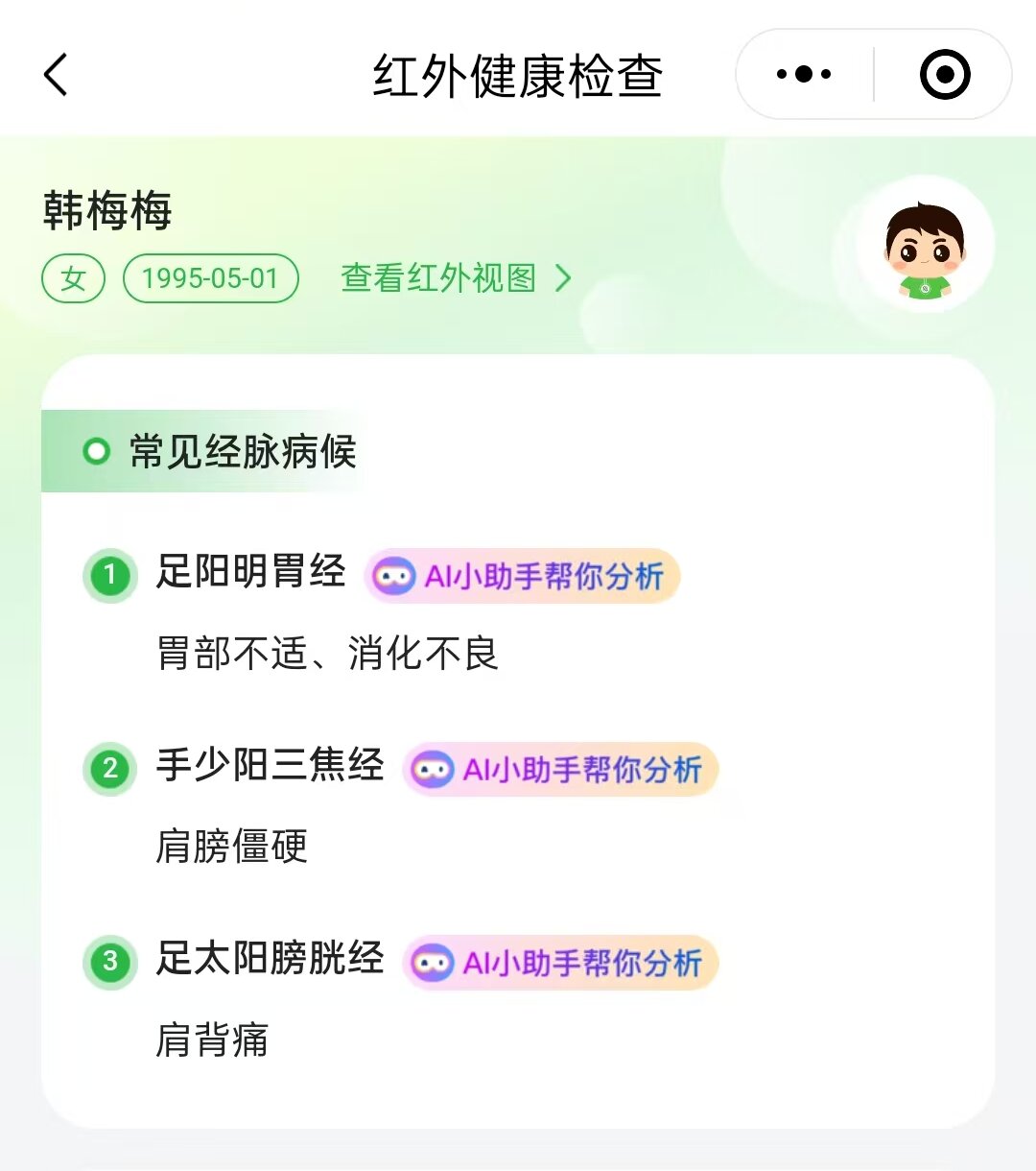常见经脉病候:显示相应经络及对应问题,提示健康存在风险;