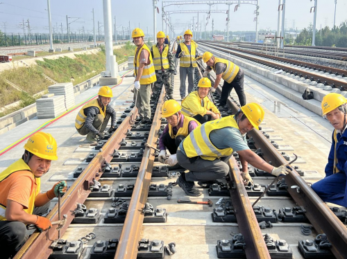 在桥梁建设的高空中、路基施工的场地上、轨道铺设的线路旁,建设者们争分夺秒、与时间赛跑,用忙碌的身影勾勒出节日里的奋斗图景。焊轨的工人俯身为钢轨焊缝精细打磨,每一次校准都为线路验收奠定坚实基础;技术人员紧盯仪器屏幕,专注检测各项数据,确保工程质量百分百达标。大家不畏辛劳、昼夜奋战,以高度的责任感和使命感,在各自岗位上默默奉献。“虽然双节不能回家陪家人,但能在岗位上为项目建设提速、为国家基建添力,这份坚守特别有意义。”一位工人朴实的话语,道出了全体建设者的共同心声。